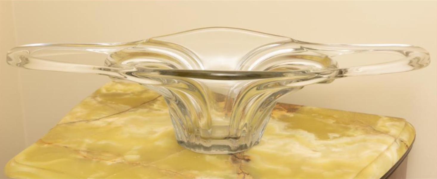 A hand moulded Mid Century French Art Vennes display bowl, with furnace fired glass handles - rare for a piece this size.